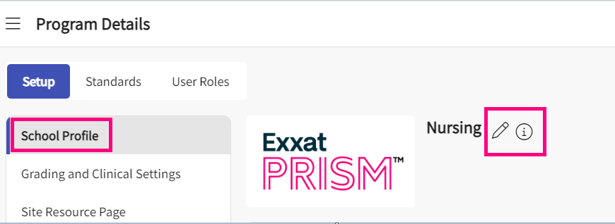 - To add or edit Program Details, click on the School profile under Setup.