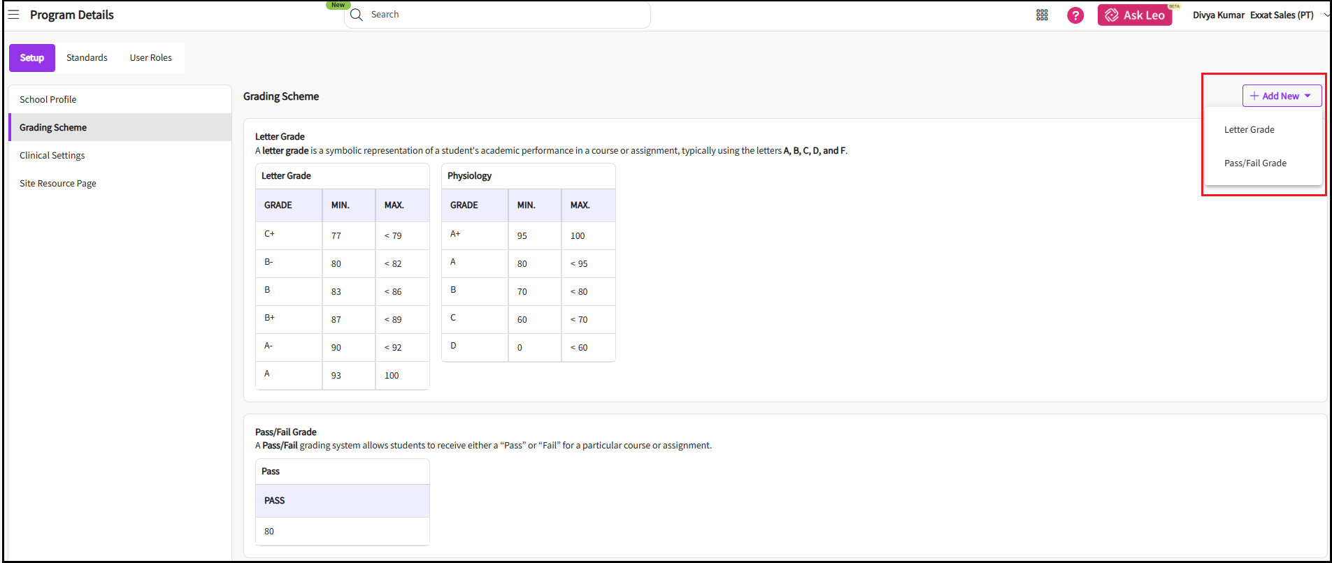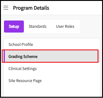 - Go to Grading Scheme in the Setup tab.