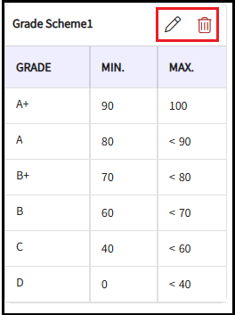 To edit the Grading Scheme, click the edit icon next to the grading scheme.