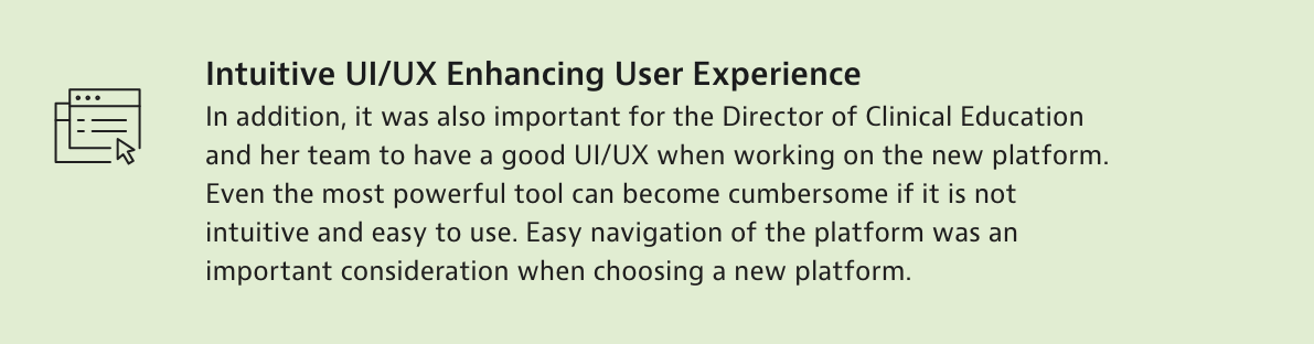 While doing her due diligence, the Director of Clinical Education realized that she needed a system that was integrated. While the University was already using technology early on (instead of Excel sheets), there were a lot of specialized systems that created silos and fragmented data.