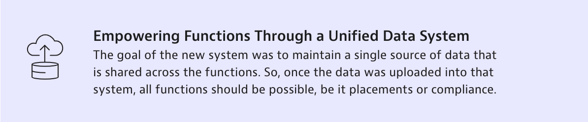 The University initially maintained data across 3 systems. This created a cumbersome system of schedules, coursework, placements, etc., the system and the tools were stand-alone, but the data was interdependent.