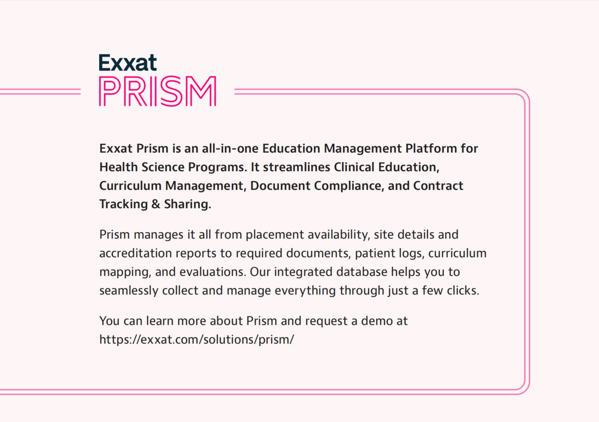 “Exxat is the leading model for the industry. There is no tool that is more efficient and adaptable to each new Physician Assistant program’s identity, goals, and objectives.”