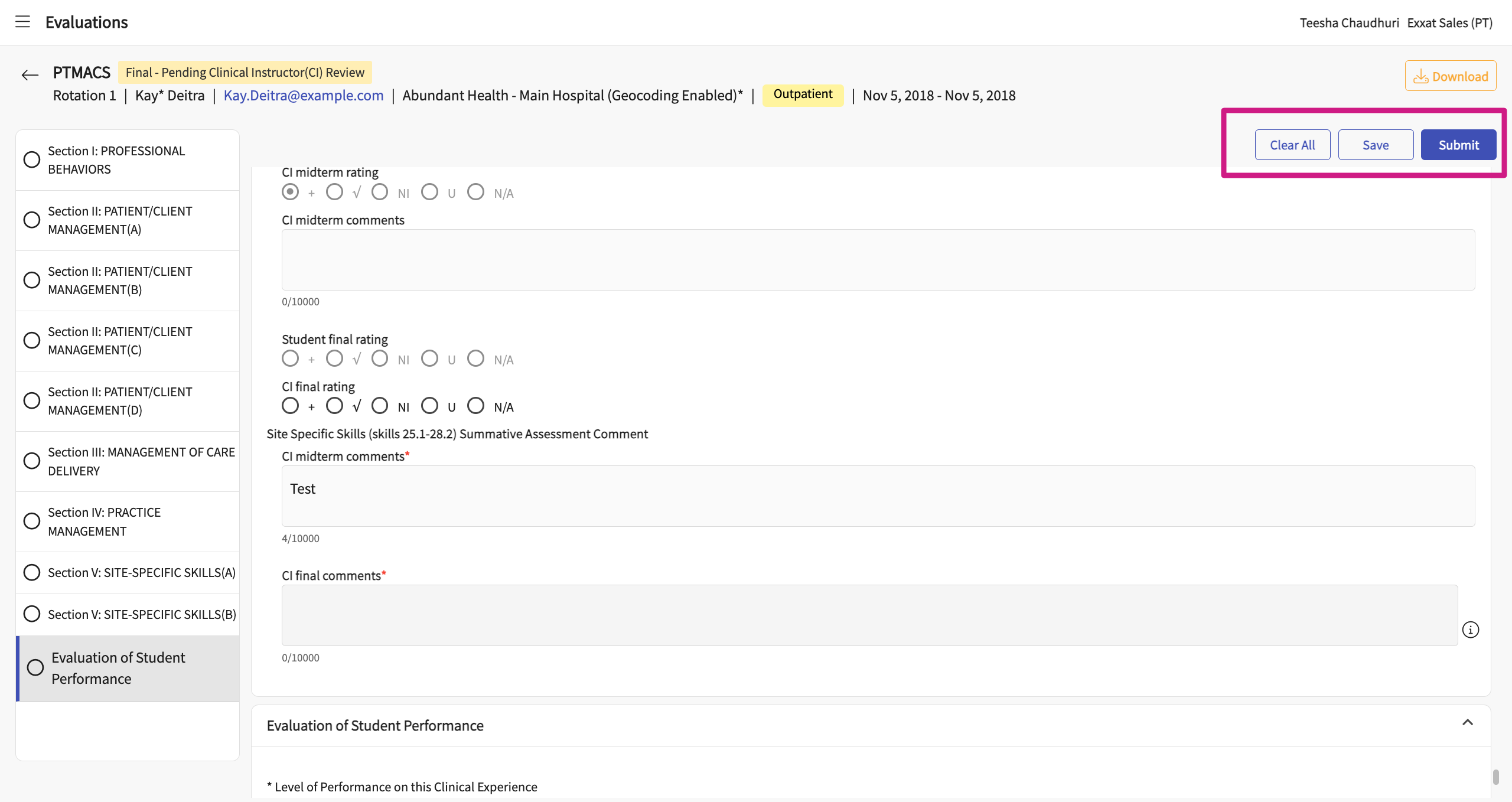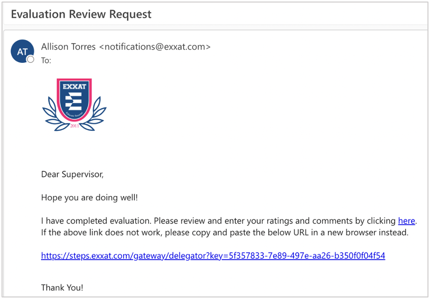 - Once the student completes the PTMACS, you will receive an email from notifications@exxat.com which will include a link for you to access the form.