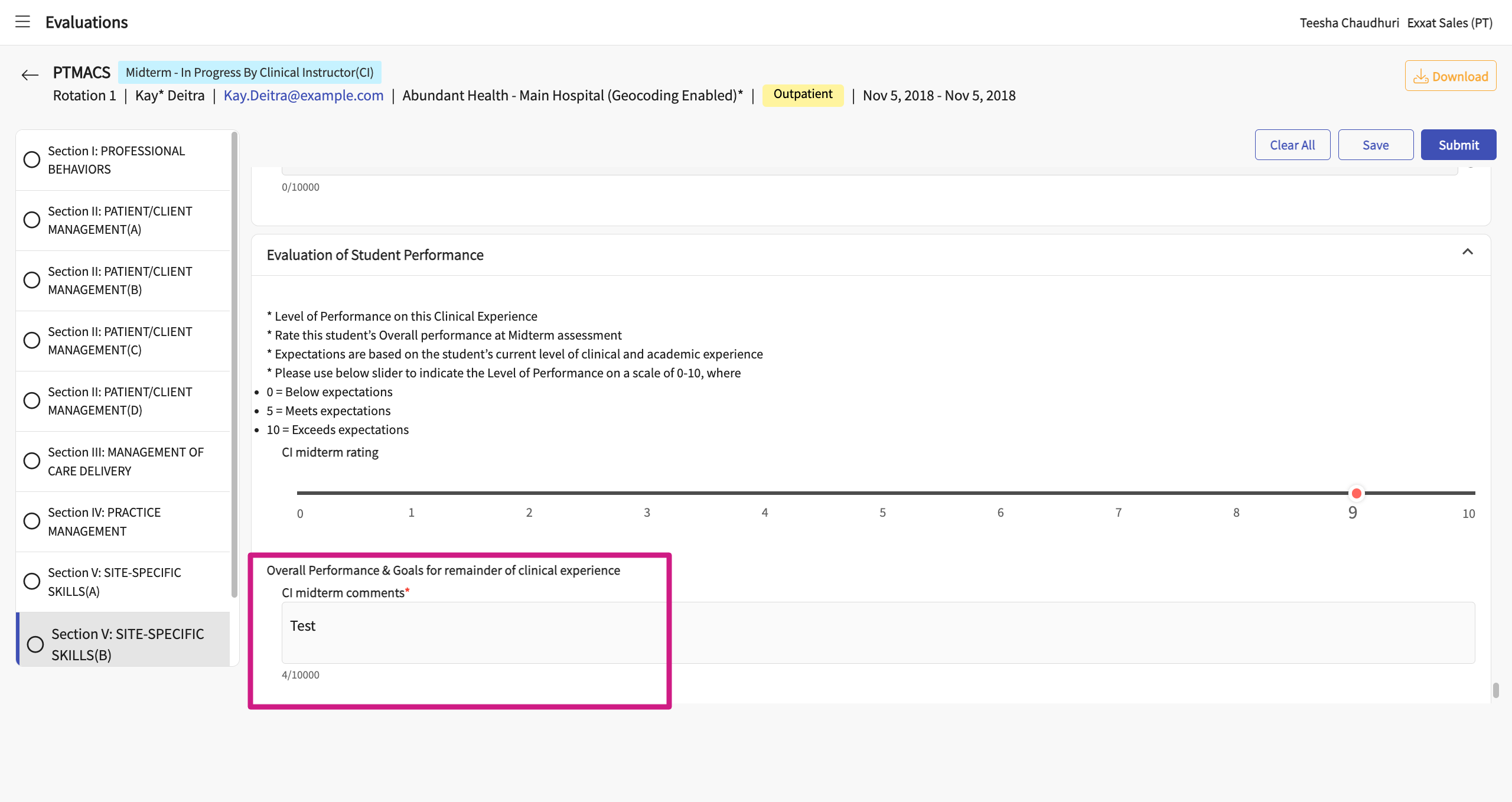 - You can also rate the student - “Evaluation of Student Performance” on a scale of 1 to 10.