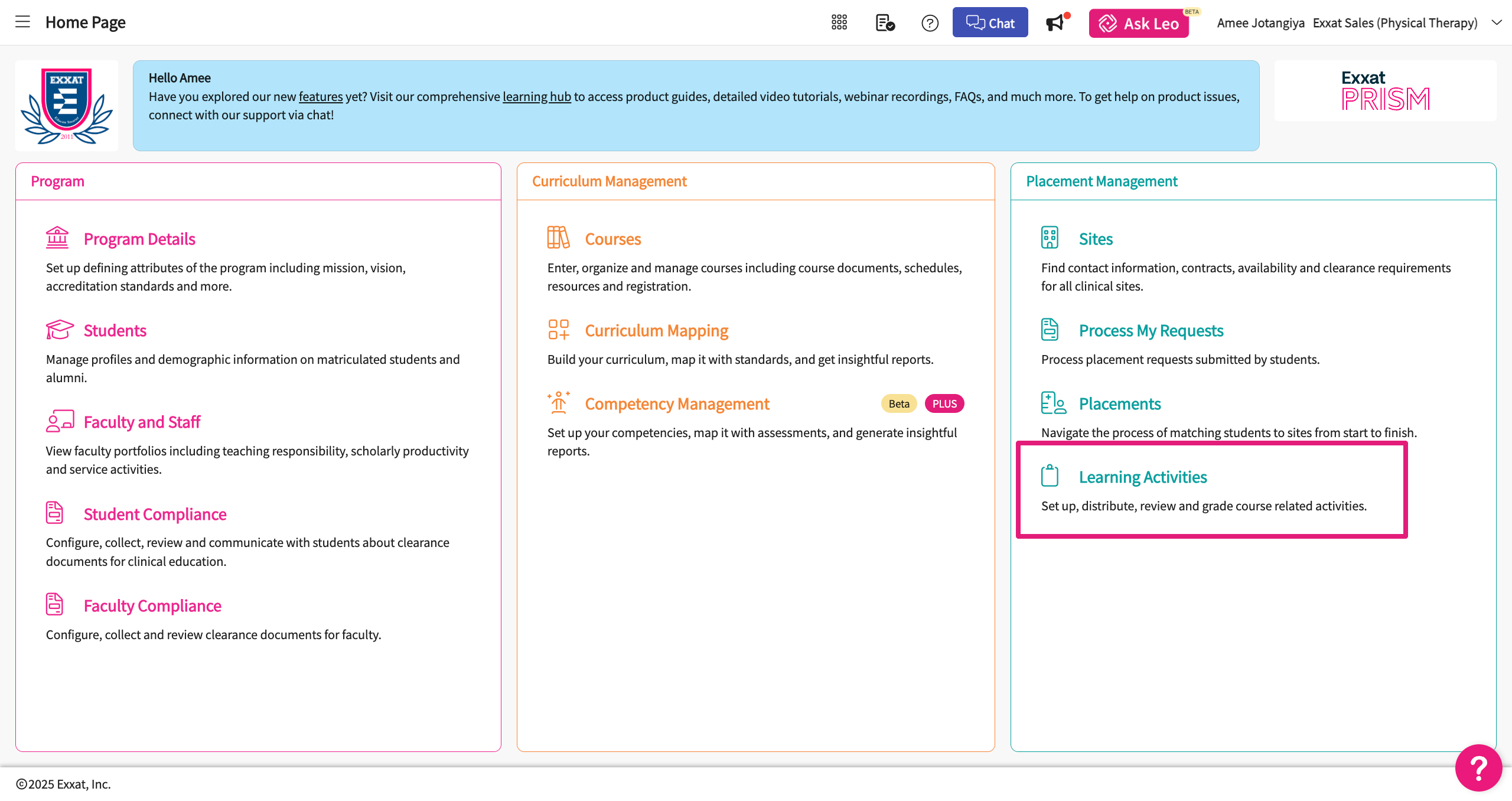 The new rotation view should be accessible through the Evaluation section in the admin interface and directly from the Learning activity landing page. This functionality should be given to course and placement faculties for their associated courses and placements with school admins