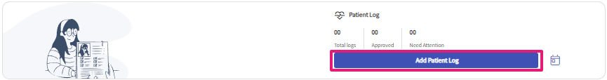 Patient Logs: Configurable cards that display total logs, approved logs, and need attention for the patient logs. Click Add Patient Log.
