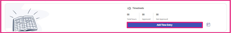 Timesheets: Configurable cards that display total, approved, and pending logs and hours. You can also add new logs and timesheets, view calendar, and access additional details.