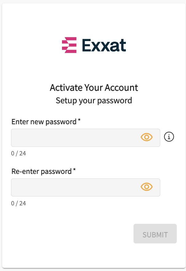 2. You’ll be redirected to Exxat Prism. Enter your new password following the guidelines. Click on the Submit button once ready.