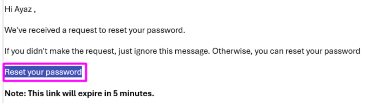 4. An email will be sent to you from <notification@exxat.com> with instructions on how to create a new password. Click on "Reset your password" and follow steps to create a new password.