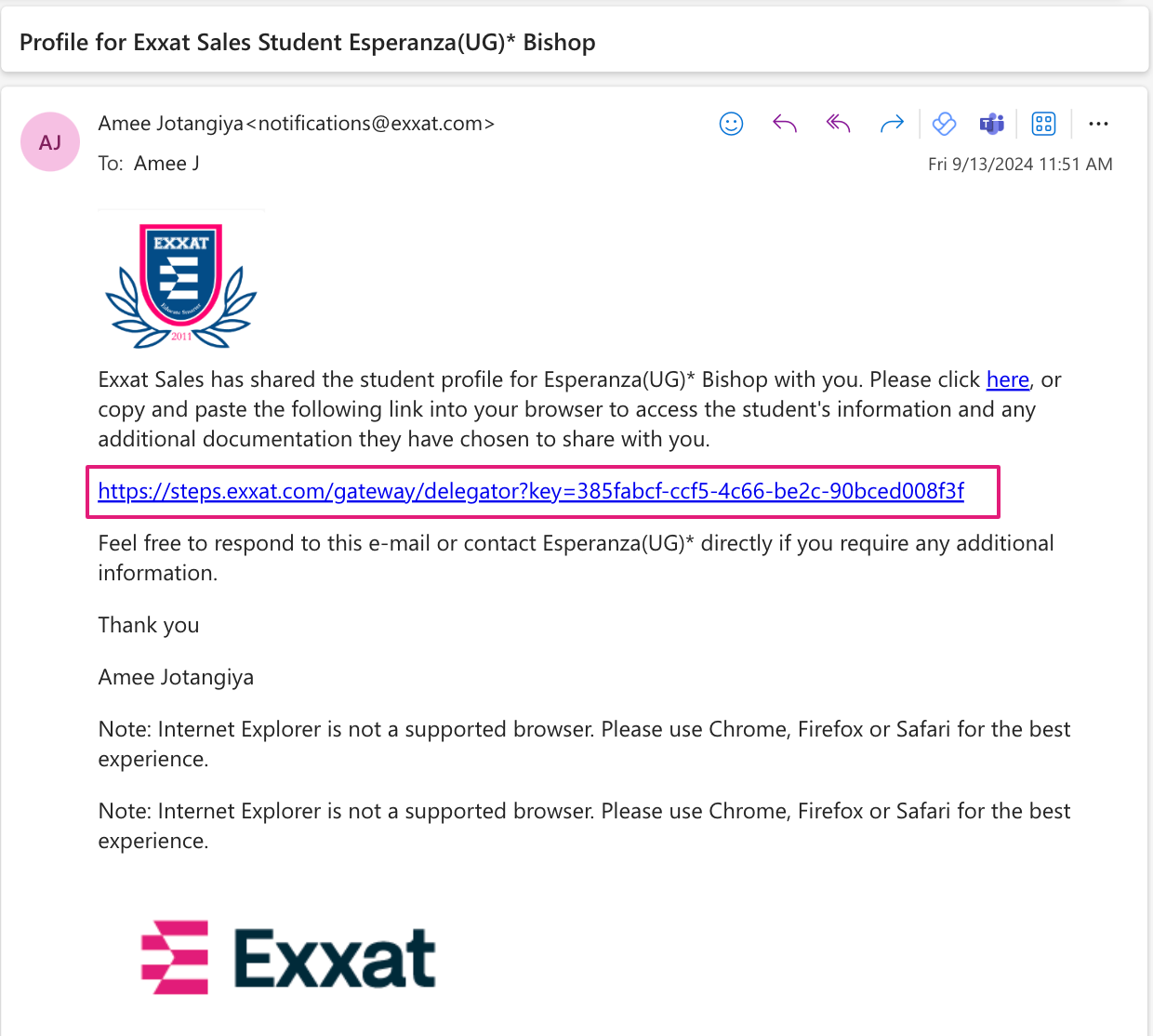 Receiving the Profile Link: You will receive an email containing a delegator link that grants access to the student profile.