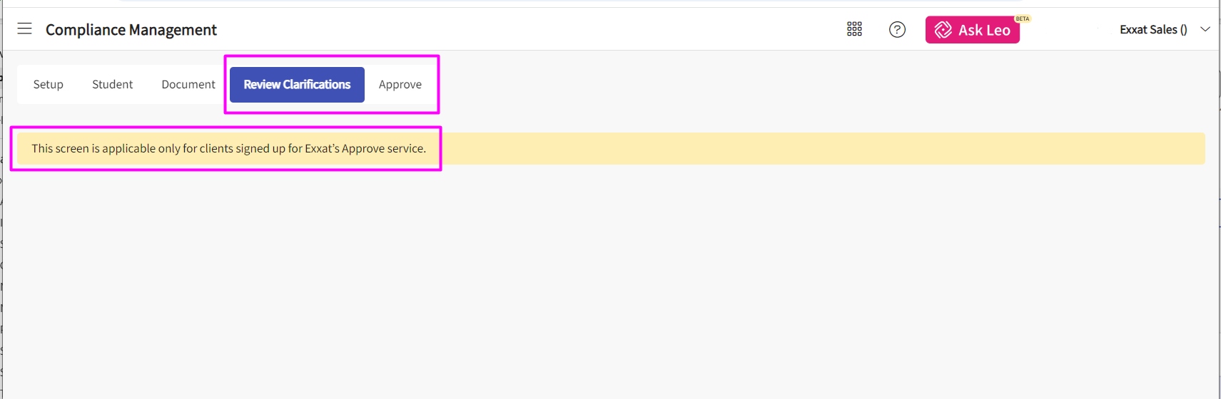 17. The tabs "Review Clarifications" & "Approve" are only available when you are signed up for Exxat's Approve Service.