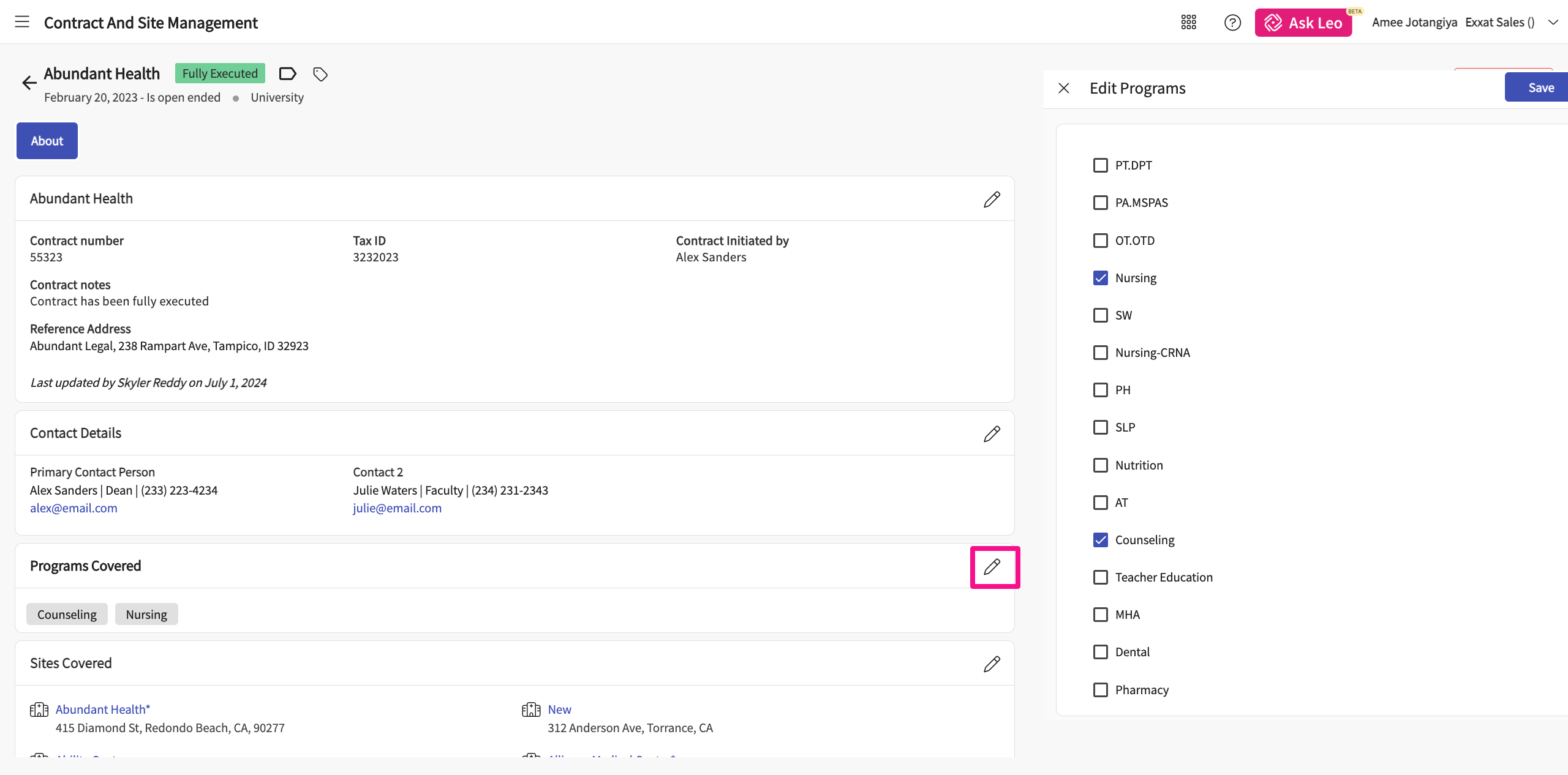 25. You can click on the pencil icon to edit and select all the programs that will be able to share this contract.