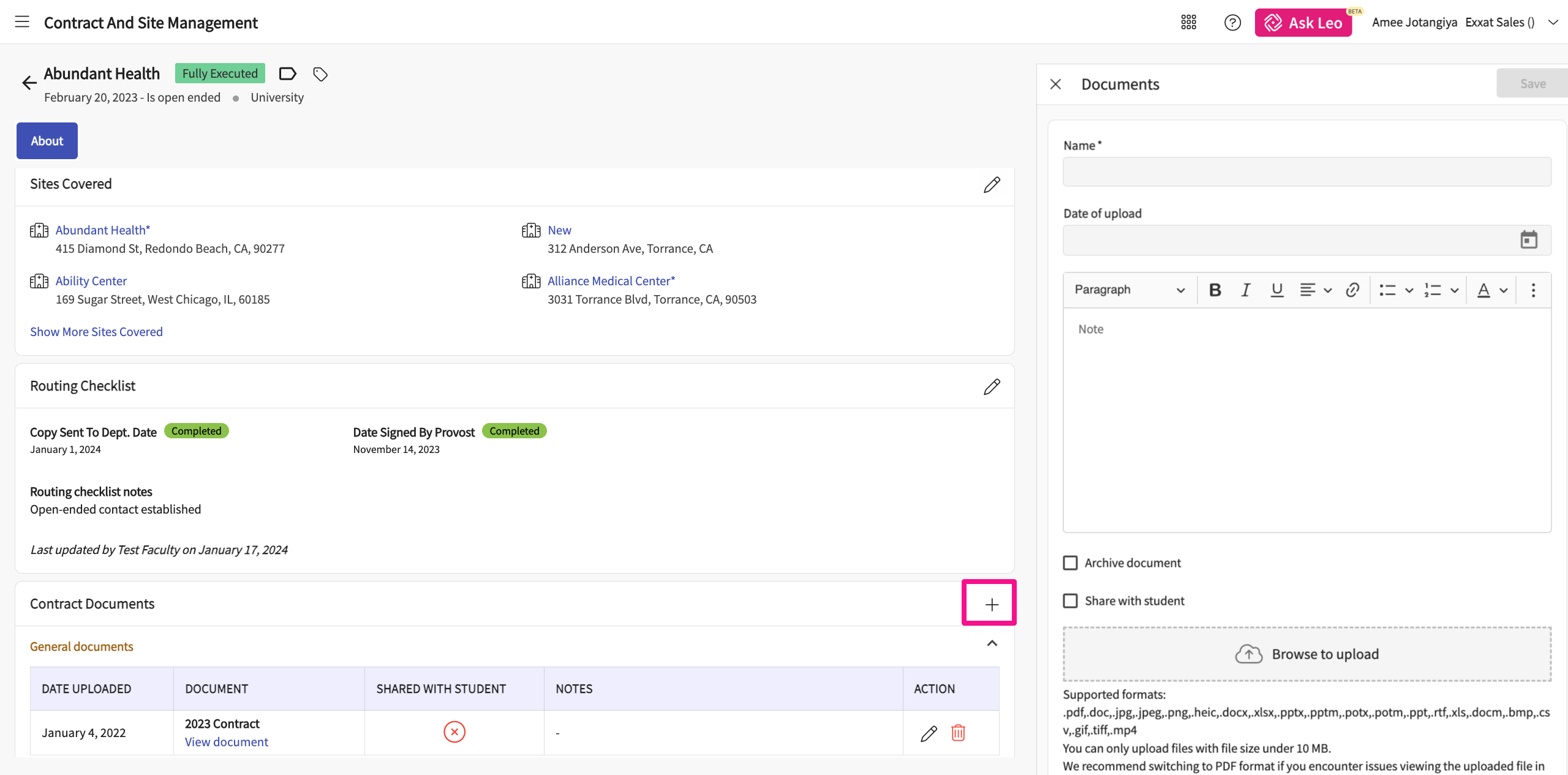 28. You can click on + icon to edit any additional documents you want to update it under contract documents.