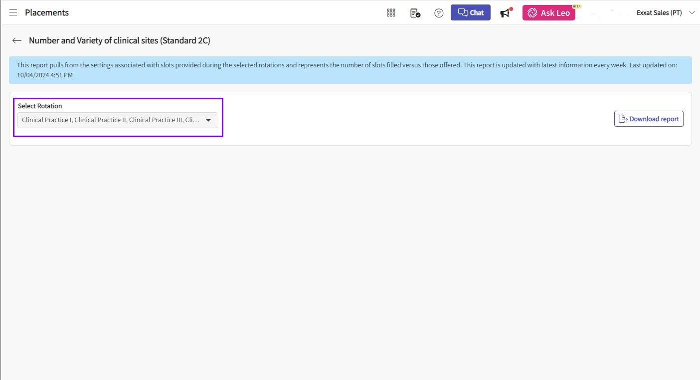 4. After clicking the report name, select the Rotation from the dropdown and click 'Download Report'