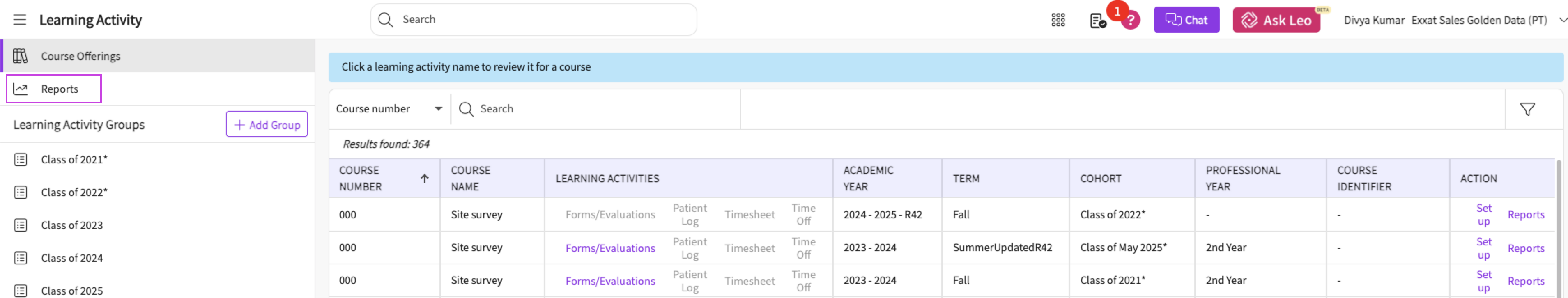 2. In the 'Learning Activities' page, click on 'Reports'