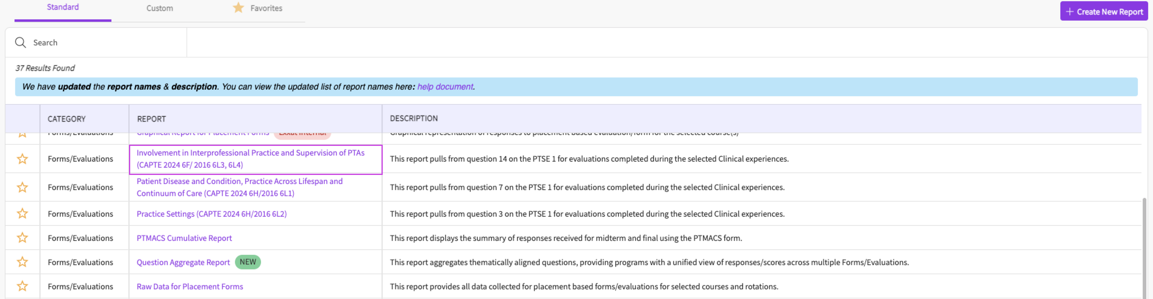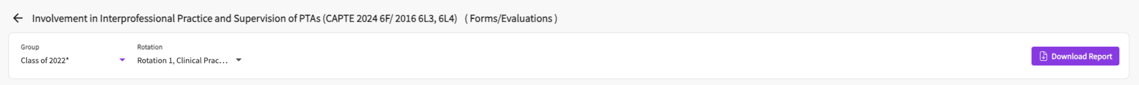 3. Next you can click on the report name 'Involvement in Interprofessional Practice and Supervision of PTAs (CAPTE 2024 6F/2016 6L3, 6L4)'