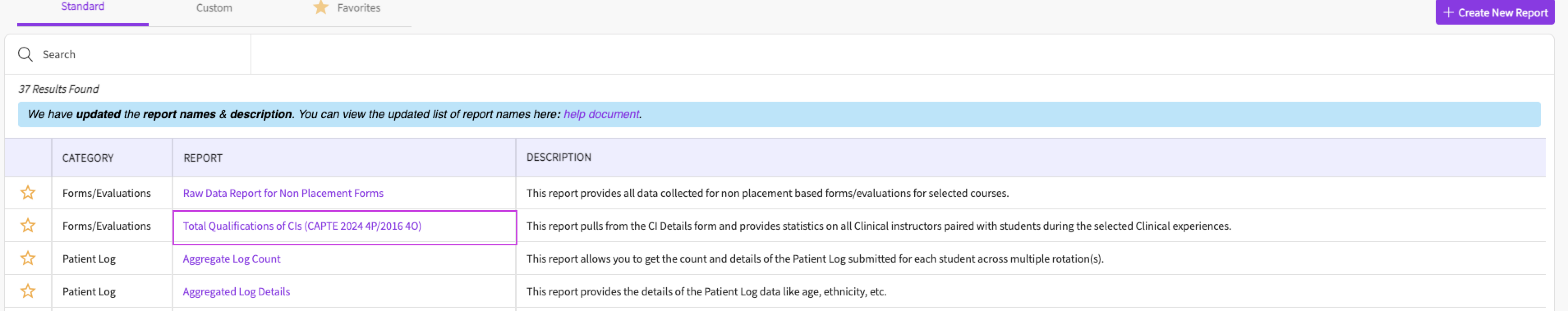 3. Next you can click on the report name 'Total Qualifications of CIs (CAPTE 2024 4P / 2016 4O)'