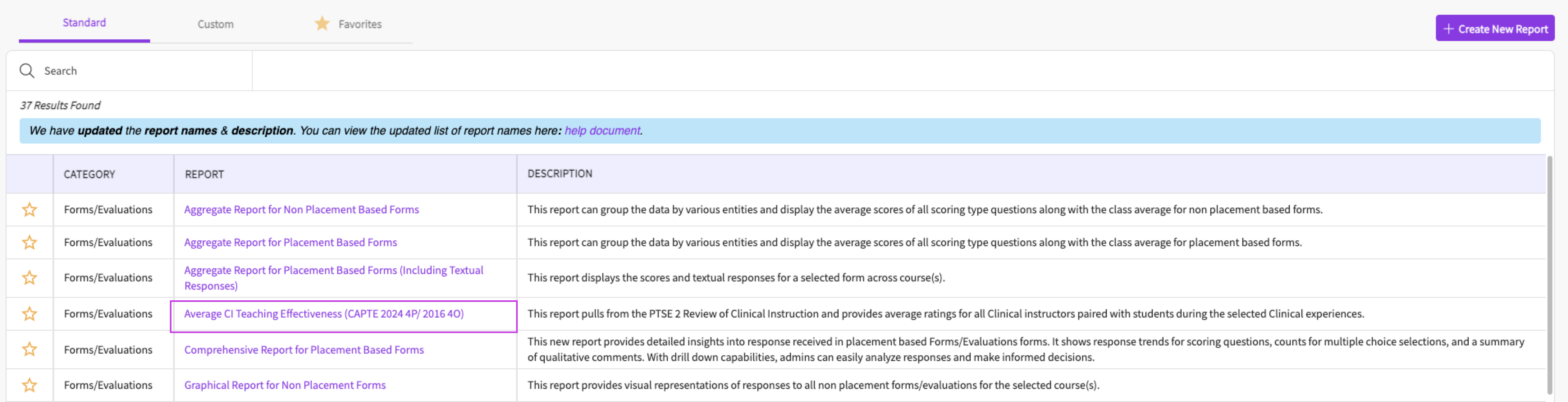 3. Next you can click on the report name 'Average CI Teaching Effectiveness (Standard 2024 4P/2016 4O)'