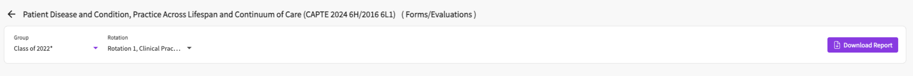 3. Next you can click on the report name 'Patient Disease and Condition, Practice Across Lifespan and Continuum of Care (CAPTE 2024 6H / 2016 6L1)'