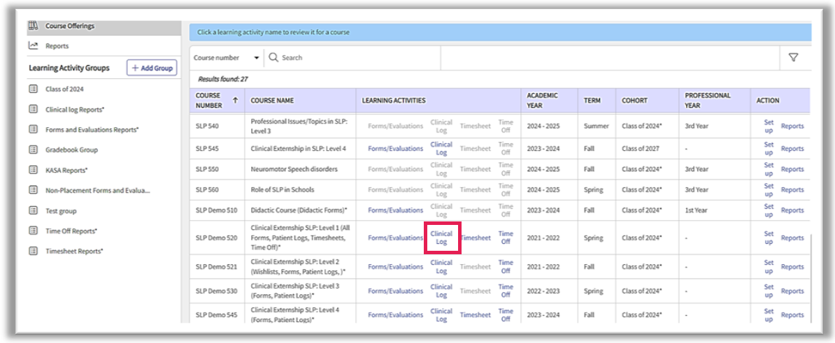 - You can also find the course or rotation you’d like to review using the Learning Activity Groups, simply select your desired course or rotation.