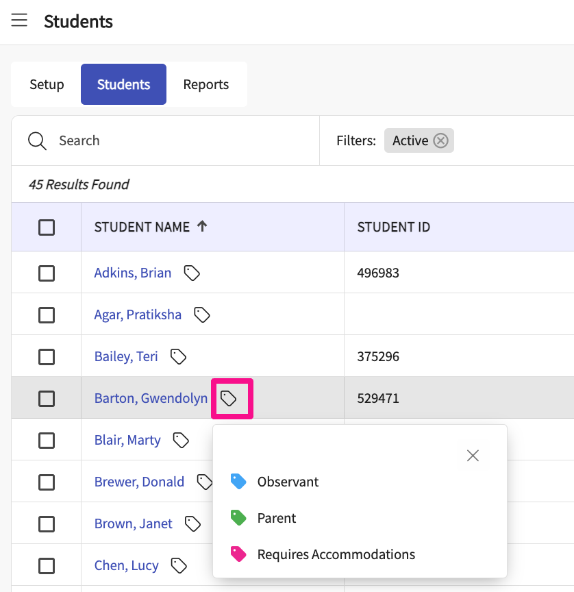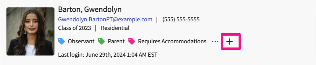 For students, some example tags to use are 'New Parent', 'Public transport needed', etc.