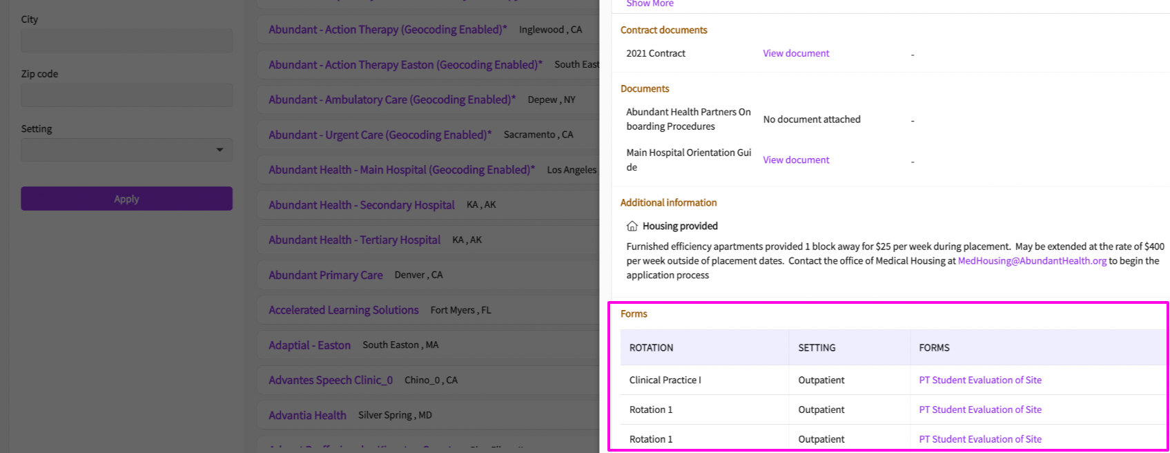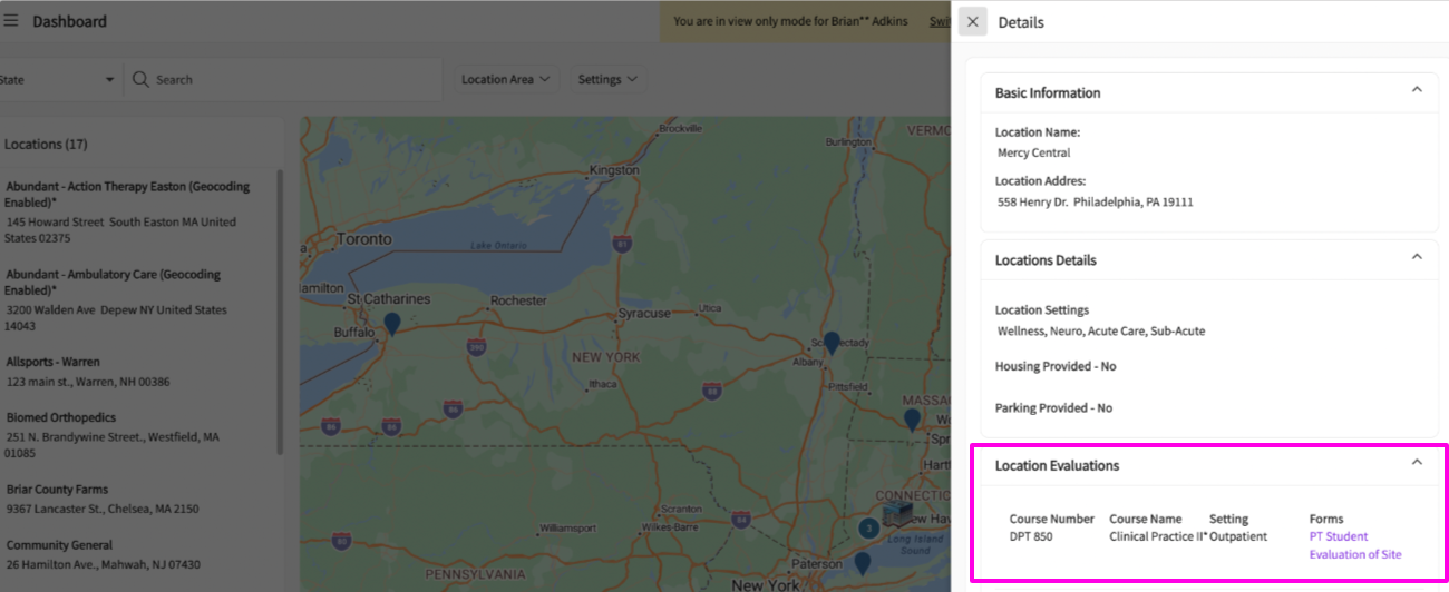 Students can access the published evaluations under 'explore clinical locations' and also in their wishlist while researching for locations.