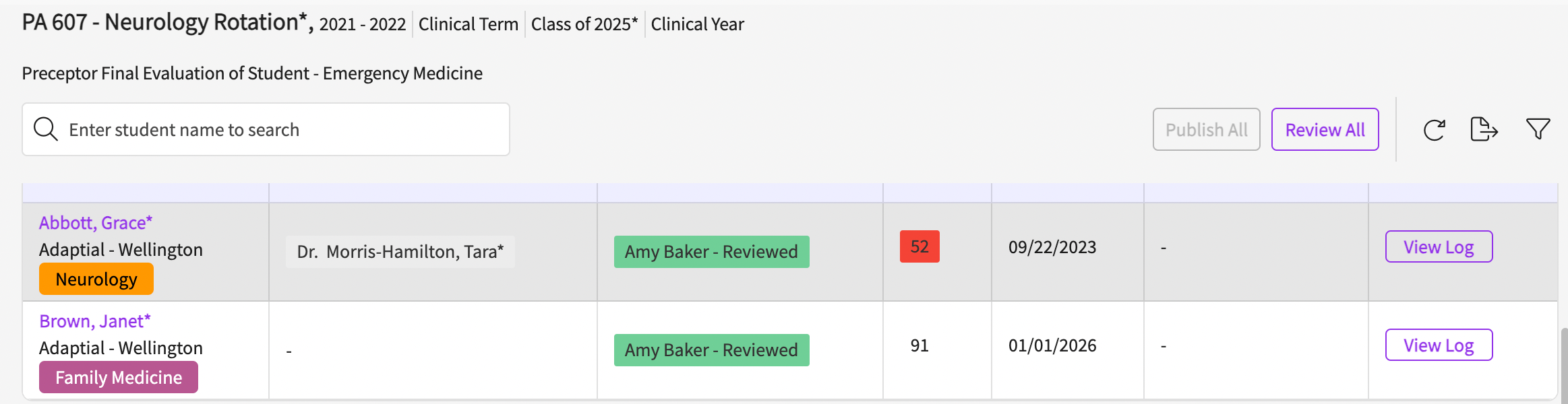 Low score indicators in evaluations play an important role, notifying you promptly when a student's performance falls below the defined expectations. You can monitor these directly from the review page as well as receive an email alert.