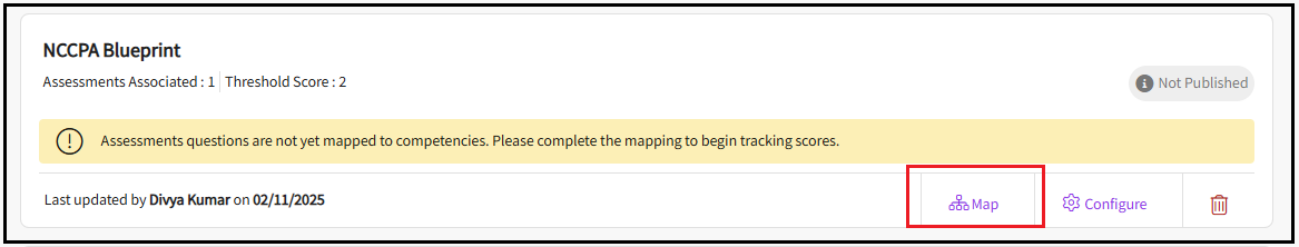 next to the competency indicating that mapping is saved as draft only. Meaning the mappings in draft are not considered for calculating the competency score.