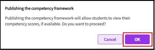 Administrators can choose when to publish the competency score to students for the selected competency framework.