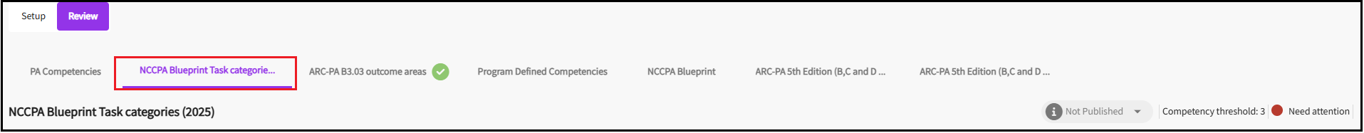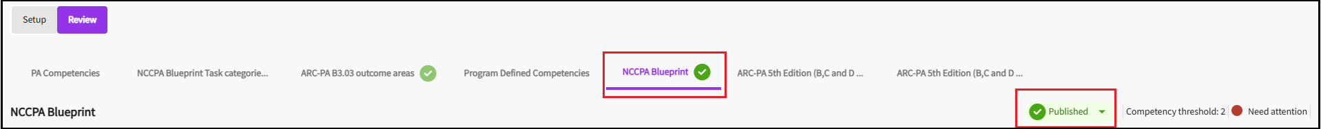 - Evaluations with the chosen scoring scale is available for mapping with the competency.