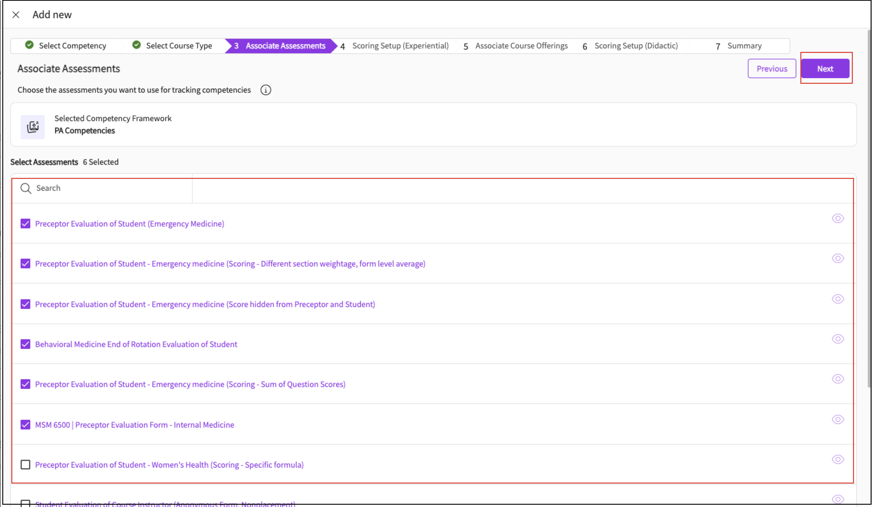Select the Assessments to associate to the competency and click Next. The list populates only assessments with a scoring scale.