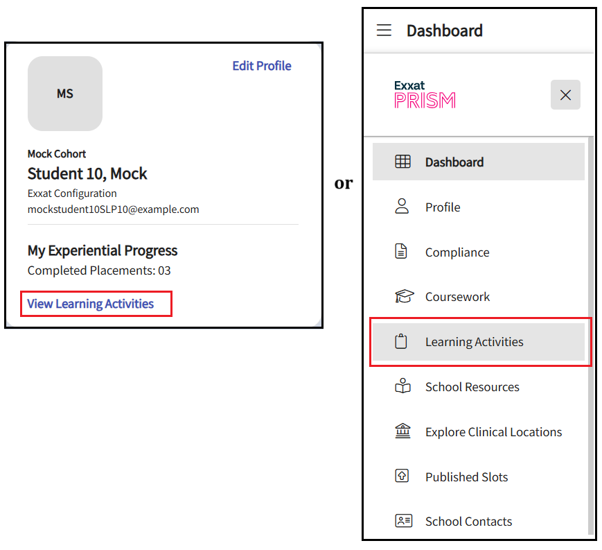 - Navigate to the Learning Activities section from the dashboard or the hamburger menu.