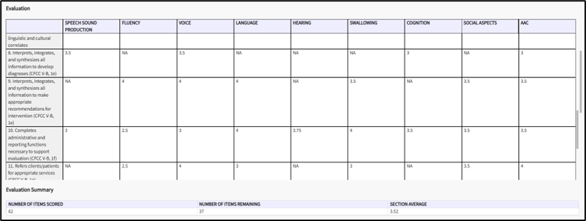 - Track Competencies and Learning Qualities Across Courses: Access a consolidated view of all evaluation and observation competencies across all 9 service delivery areas, where you can track the progress/performance with individual score as well as aggregate score. You will also be able to see all personal qualities and professional practice areas with received score during your clinical.