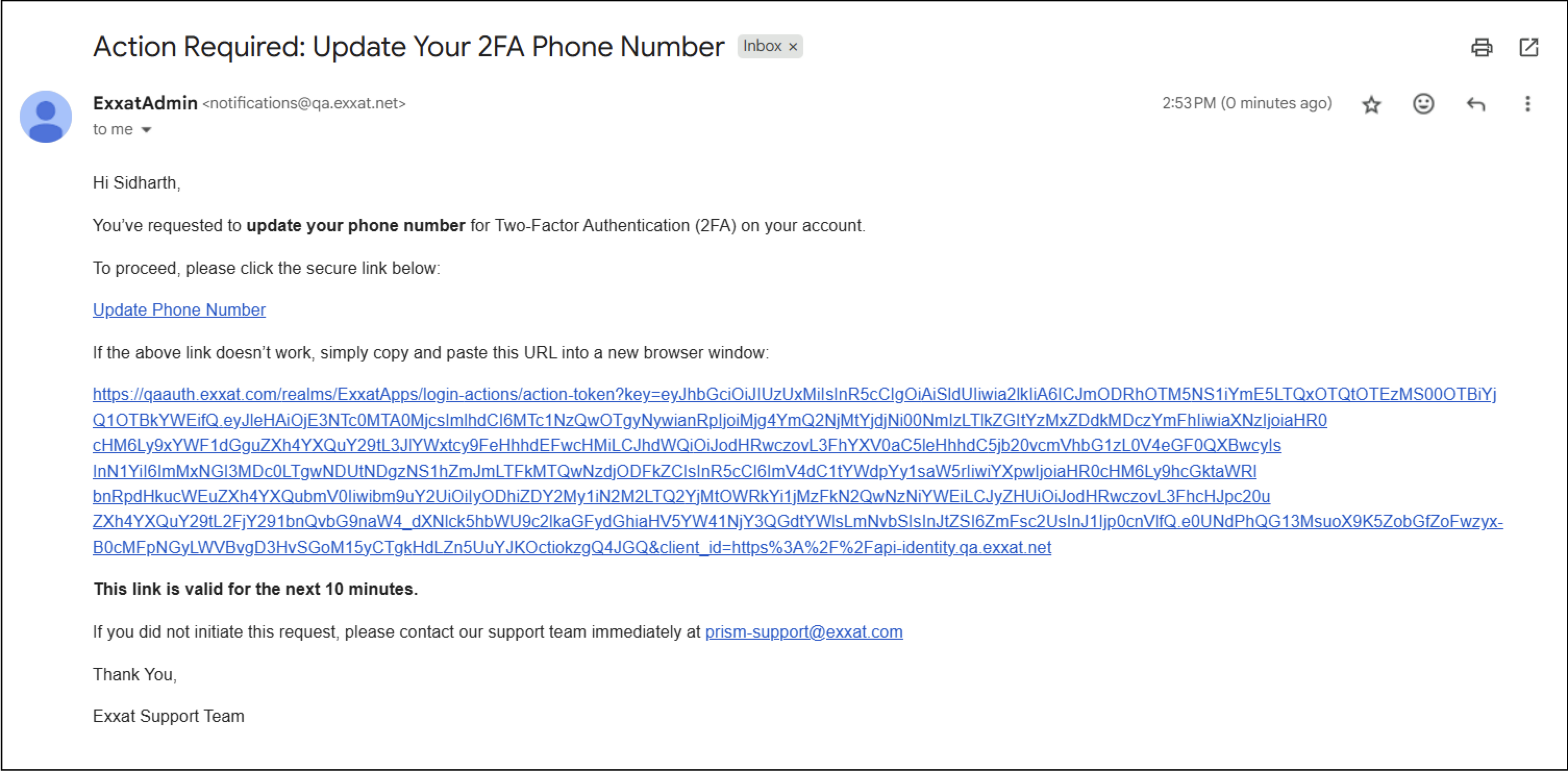 Two-Factor Authentication (2FA) for Exxat Prism Non-SSO Student Users