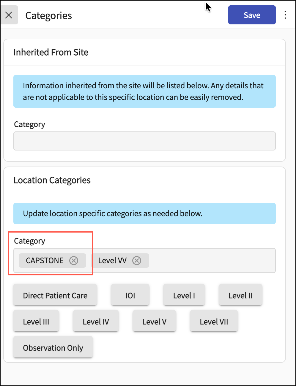 In the Location Categories section, select Capstone as category.