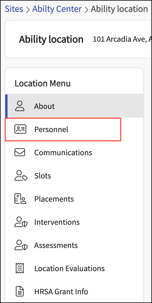 From the Location Menu, select Personnel.