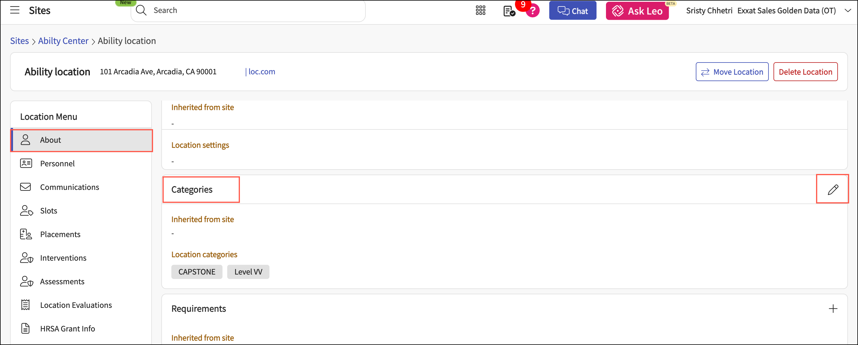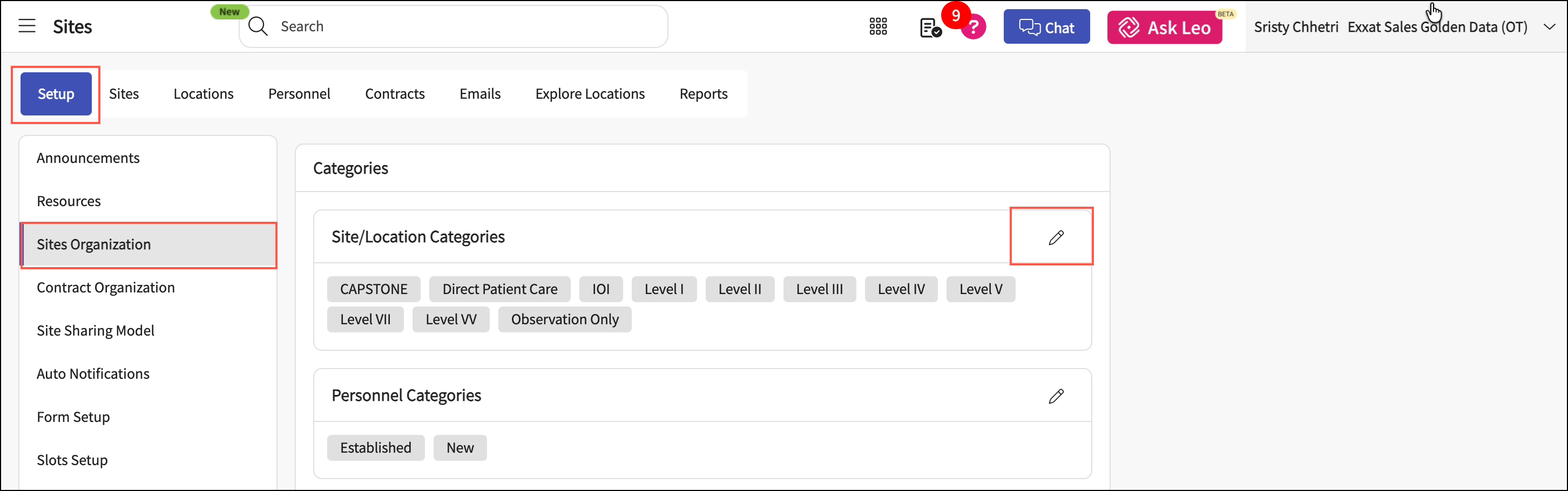 In Categories > Sites/Location Categories, click the Edit icon.