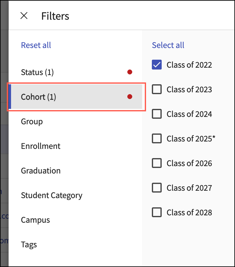 Cohort: Select the cohort from the dropdown