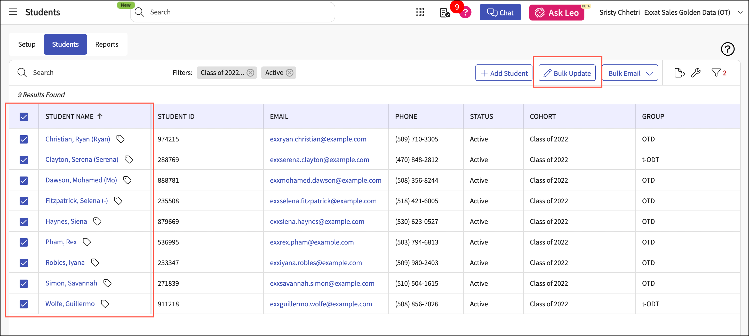 Select the students you want to add to the Capstone category, then click Bulk Update.