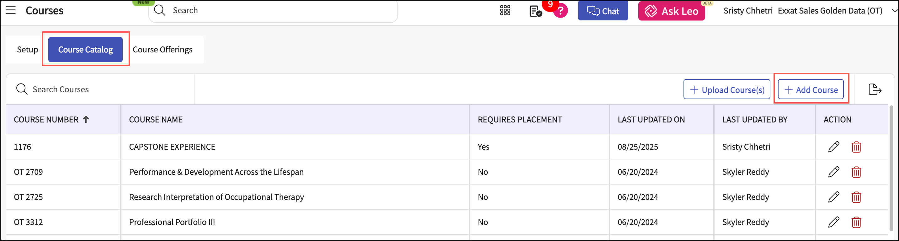 Go to the Course Catalog tab and click Add Course.