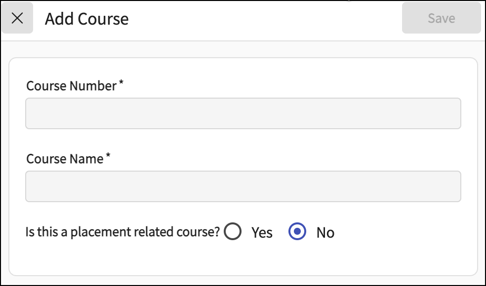 For Is this a placement-related course?, select Yes