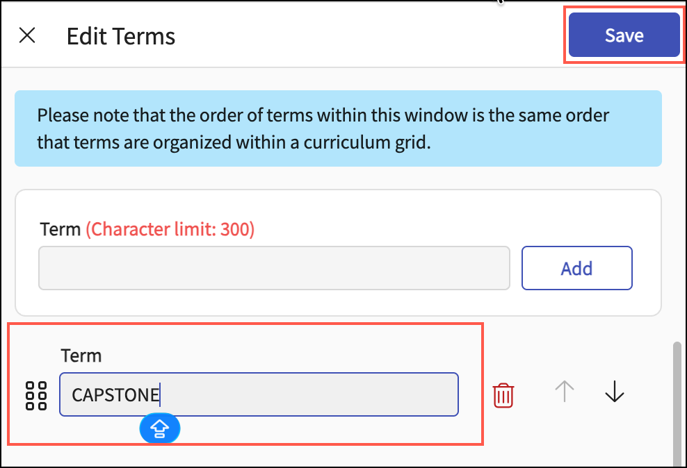 Add Capstone as a Term, then click Save.