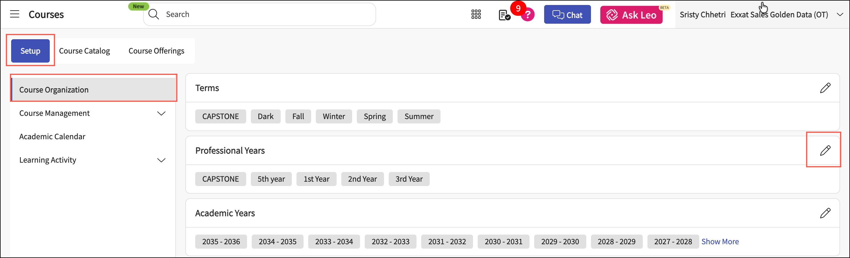 Set up Terms and Professional years for Capstone