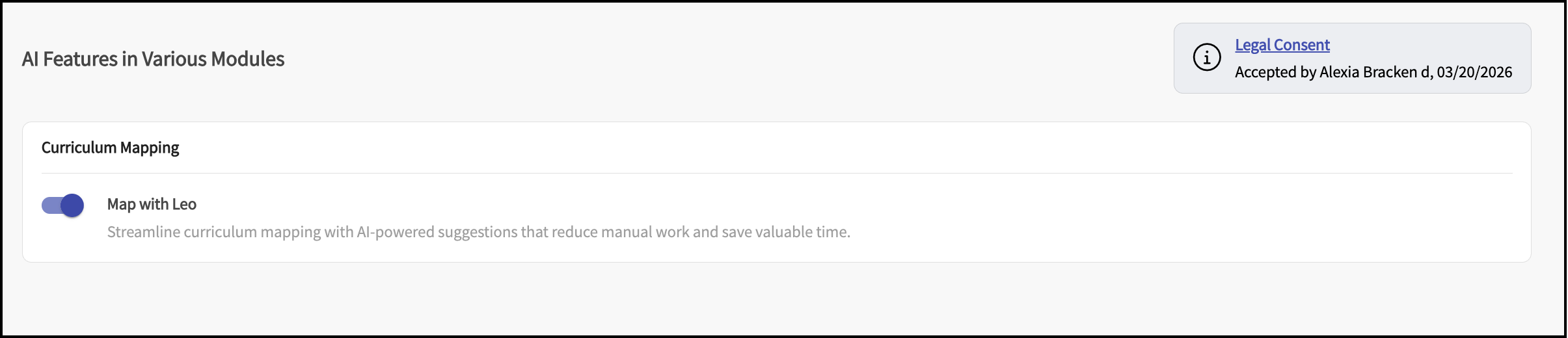 This guide walks you through enabling the feature, understanding consent, and using Leo within your curriculum mapping workflow.