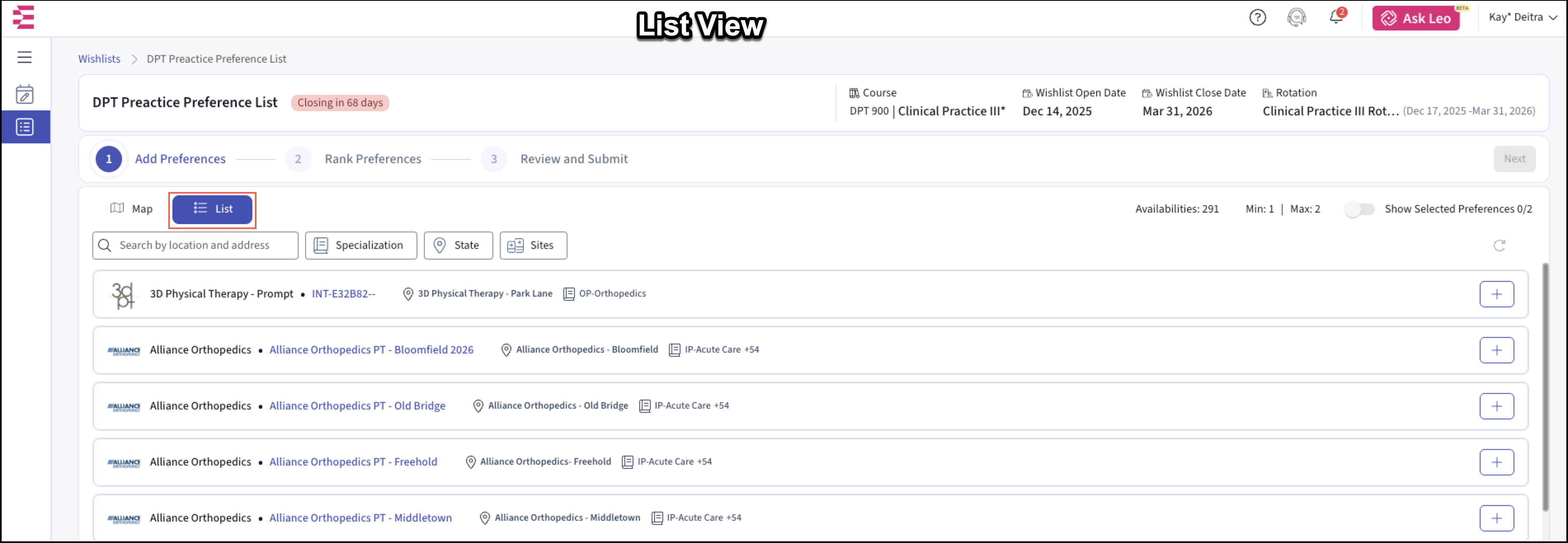 ExxatOne Availability Based Wishlist allows you to rank available clinical opportunities before placement requests are sent to sites, giving your program better insight into your preferences early in the process. This approach helps align placements with your goals, improves overall placement satisfaction, and supports more informed decision-making.