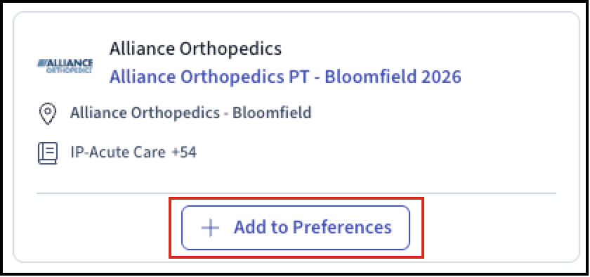 Use the Search box or the filters below the view options to quickly find your preferred location.In map view, on the location card, click Add Preference button for the location you want to select.