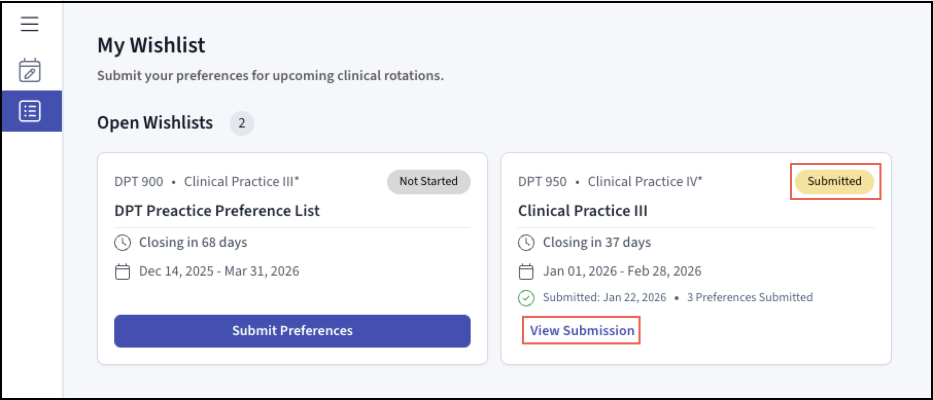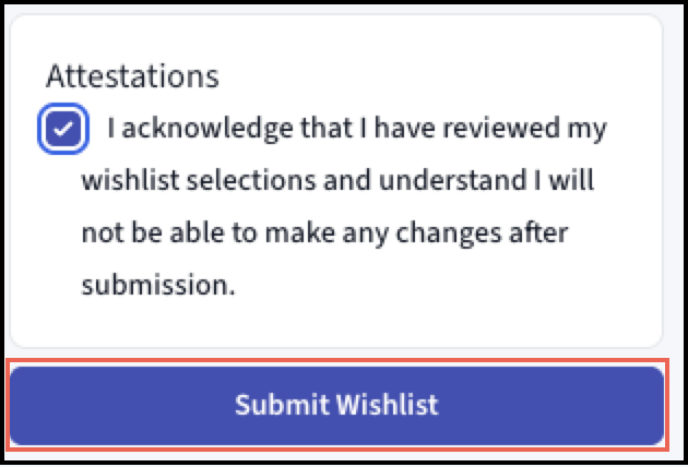 - On the My Wishlist page in ExxatOne, click Submit Preferences for the wishlist you want to submit.