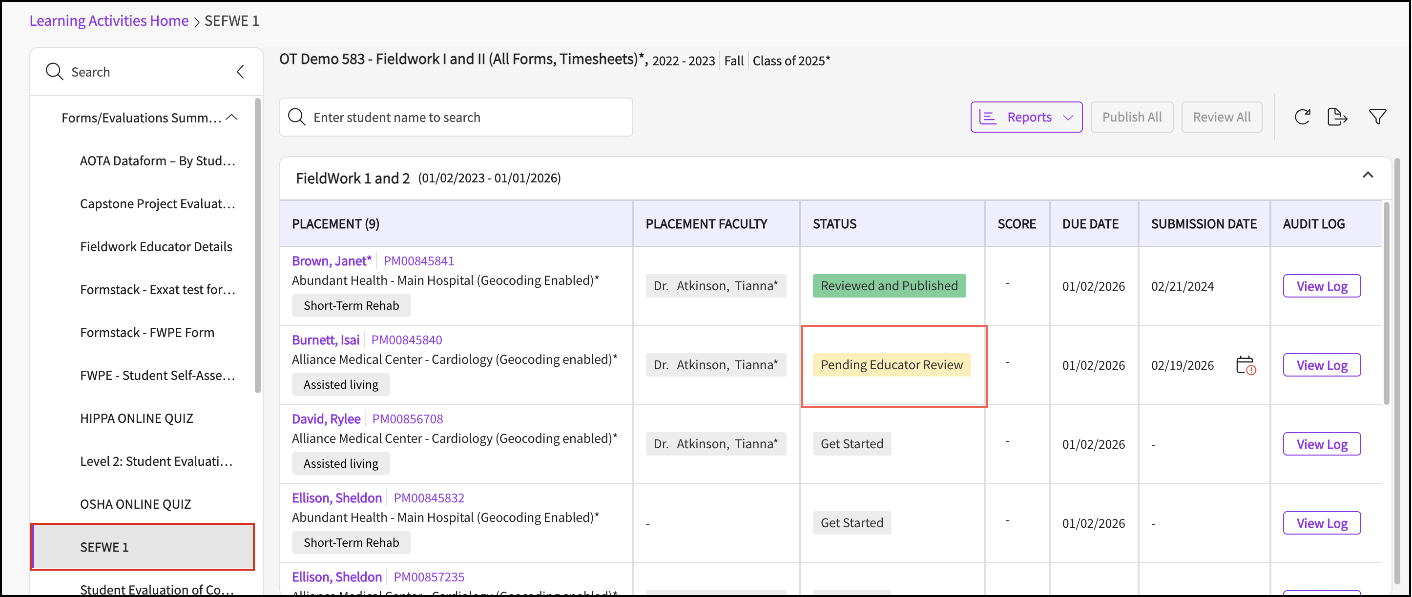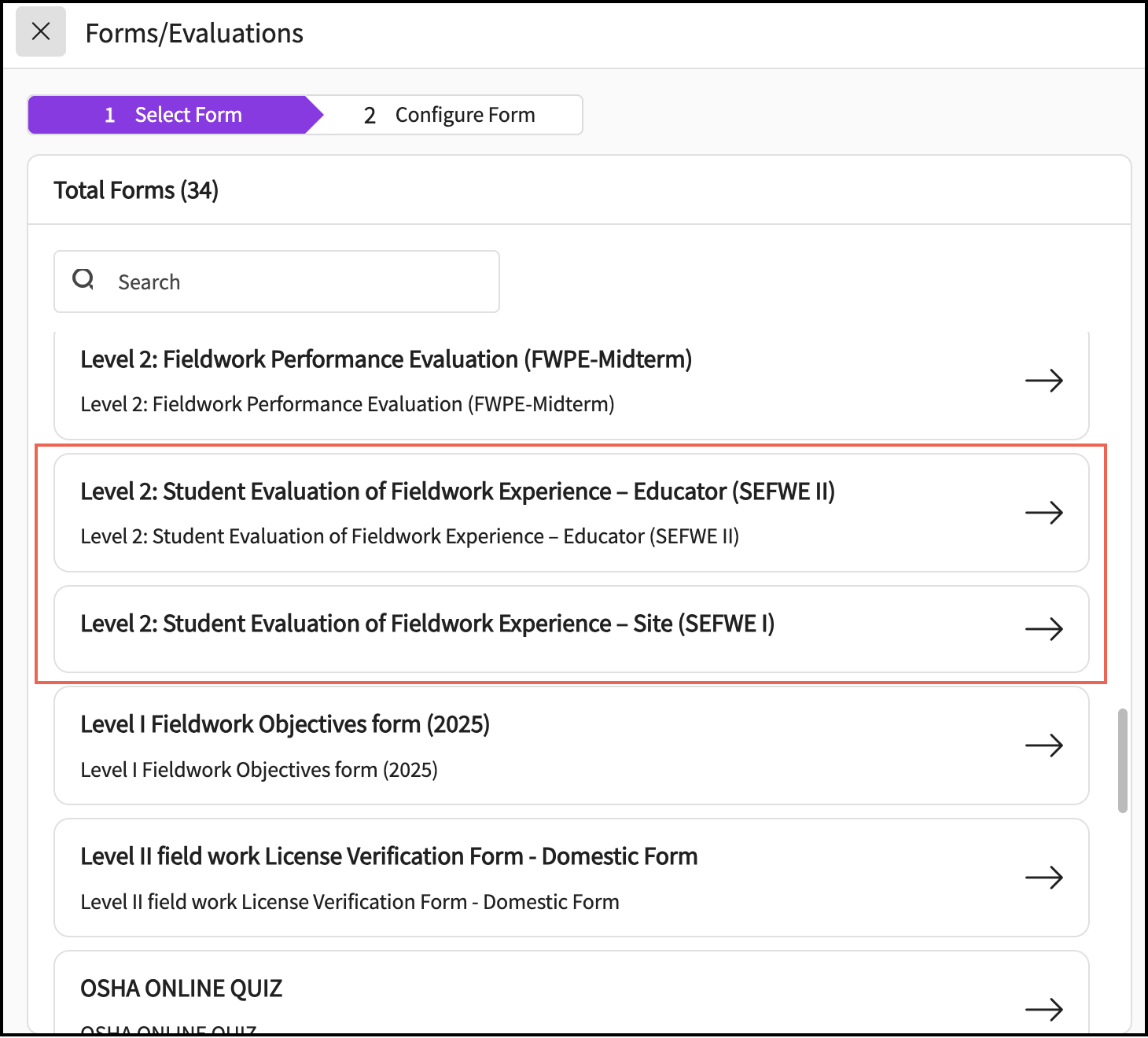 - SEFWE II: Used to evaluate the Fieldwork Educator