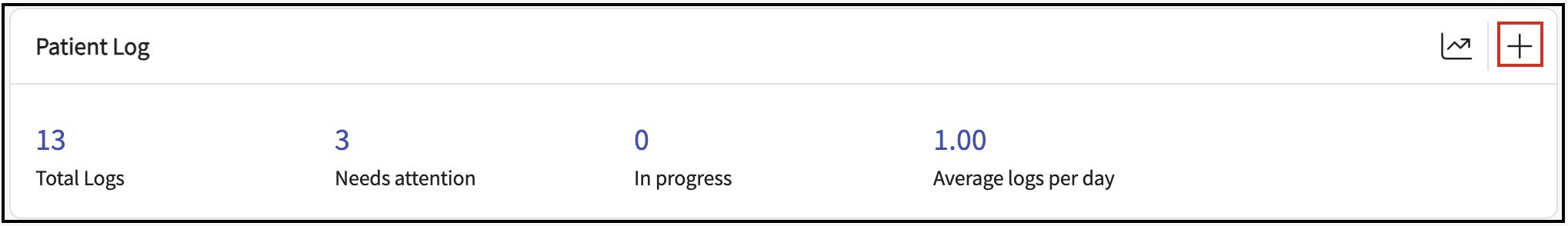 In the patient log section you can see total logs, logs that need attention, logs in progress , and average log entries per day.