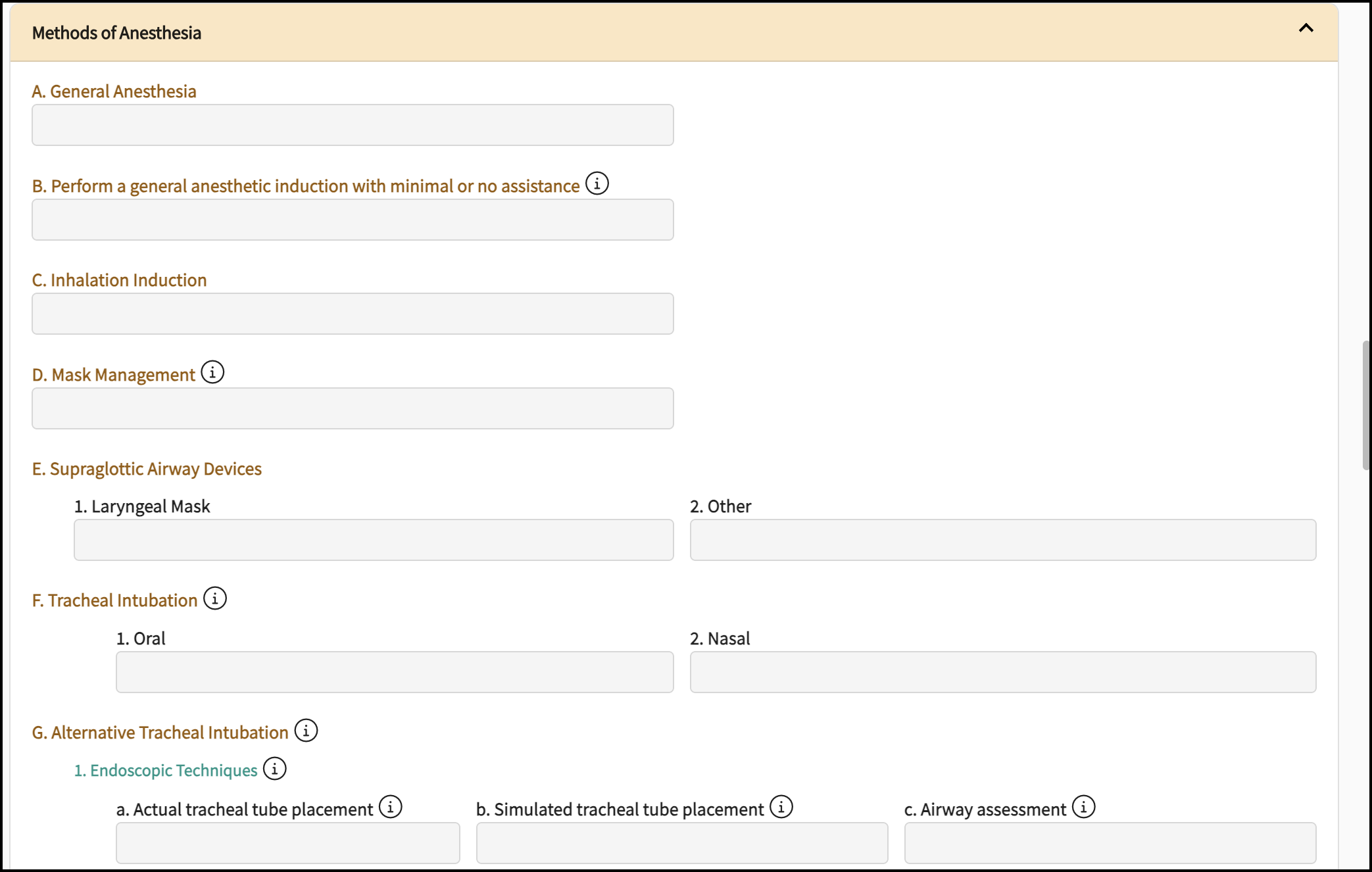 For Nurse Anesthesia programs, the CCE Case Log supports tracking requirements aligned with the National Board of Certification and Recertification for Nurse Anesthetists (NBCRNA). These requirements ensure appropriate exposure to case types, patient populations, anesthesia techniques, and competency domains prior to graduation.